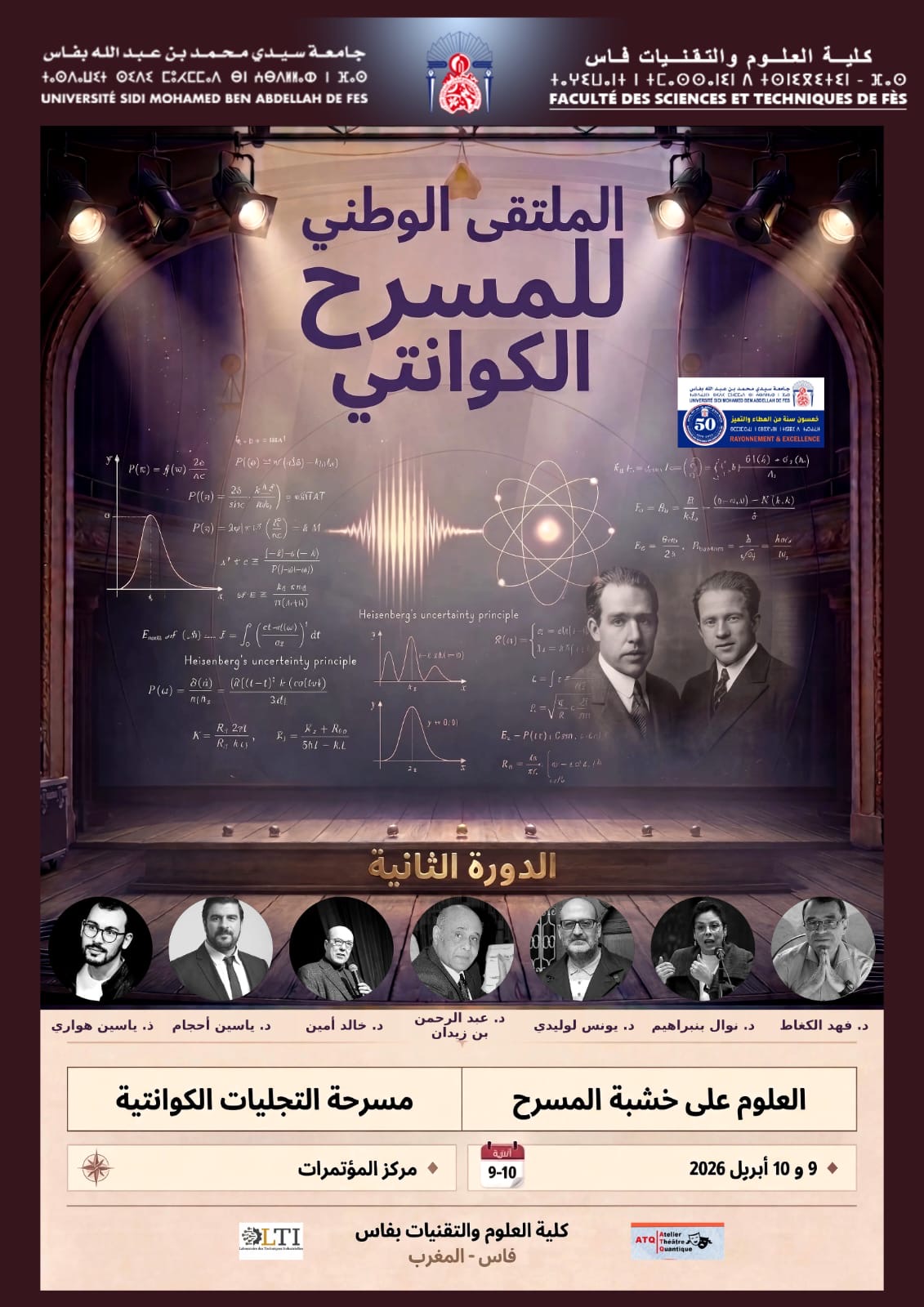 تحتضن مدينة فاس يومي 9 و10 أبريل 2026 فعاليات الدورة الثانية من “الملتقى الوطني للمسرح الكوانتي” (Quantum Theatre 2)، الذي تنظمه كلية العلوم والتقنيات بفاس التابعة لـ جامعة سيدي محمد بن عبد الله، وذلك بمركز المؤتمرات بالكلية، في مبادرة أكاديمية وفنية تستكشف تقاطعات العلم والمسرح.