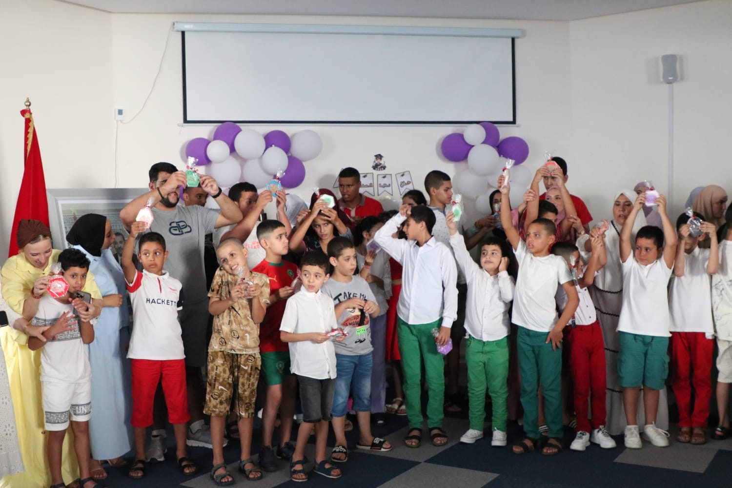 واستُهل الحفل بتحية العلم وترديد النشيد الوطني، الذي أبدع أطفال الجمعية في تقديمه عبر لوحة فنية مفعمة بالوطنية والبراءة، تلاها كلمة ترحيبية مؤثرة ألقتها السيدة سهام شمس، رئيسة الجمعية، حيث عبرت عن اعتزازها الكبير بما حققه الفريق التربوي طيلة الموسم، وأشادت بالتطور الملحوظ في قدرات الأطفال، مؤكدة أن هذه الإنجازات ما كانت لتتحقق لولا تظافر جهود الجميع.