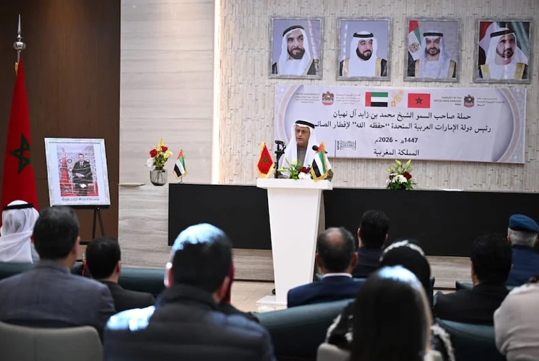 واختتم السفير كلمته بتقديم التهاني لصاحب الجلالة الملك محمد السادس نصره الله، وصاحب السمو الشيخ محمد بن زايد آل نهيان، مع الدعاء بأن يعيد الله هذه المناسبة بالخير واليمن والبركات على الجميع.