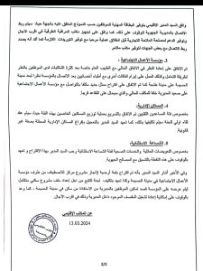 وتم الاتفاق ايضا بالتسريع بعملية توزيع المسكنين الخاصين بفئة المساعدين التقنيين حيث سيتم عقد لقاء أولي للجنة سيتم تكليفها بالموضوع، كما تعهد السيد المدير بالتعجيل بإفراغ المساكن الإدارية المحتلة بصفة غير قانونية، أما بخصوص التعويضات العائلية والخدمات الصحية لفئة الشساعة الاستثنائية رحب السيد المدير بهذا الاقتراح متعهدا بالوقوف على هذه النقطة بالتنسيق مع المصالح الجهوية للقطاع.