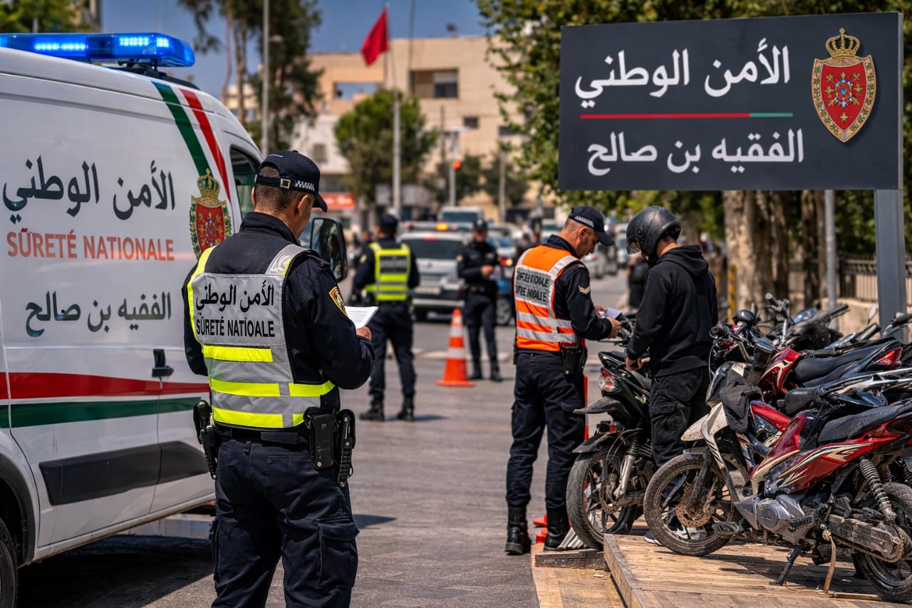 تواصل المصالح الأمنية بمدينة الفقيه بن صالح أداء أدوارها في حفظ الأمن والنظام العام، من خلال حضور ميداني متواصل وتدخلات تهدف إلى حماية المواطنين وصون ممتلكاتهم، في إطار مقاربة أمنية تقوم على الإستباقية والجاهزية والتدخل السريع عند الضرورة.