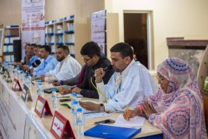 افتتحت بعد ذلك الجلسة العلمية الأولى التي ترأس أشغالها الدكتور “يحضيه بوهدا حيث كانت المداخلة الأولى من تقديم الاستاذ محمد فاضل لفيرس ” وهو باحث في الأدب الحساني، من خلال ورقة معنونة بـ: (قراءة في شعار الدورة : الأدب الحساني وتحدي التحول الاجتماعي )