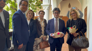 وصل الوفد الإيطالي، إلى ساحة الفدان عمدة مدينة ماتيرا “MATERA » السيدANTONIO NICOLETTI والسيدةSIMONA ORSI مستشارة السياحة والثقافة لمدينة ماتيرا، رفقة الدكتورة الأكاديمية السيدة جنان الزواقي لتدشين هذا المعرض. وحضر ايضاً أعضاء مؤسسة TRES CULTURAS ANNA LINDH