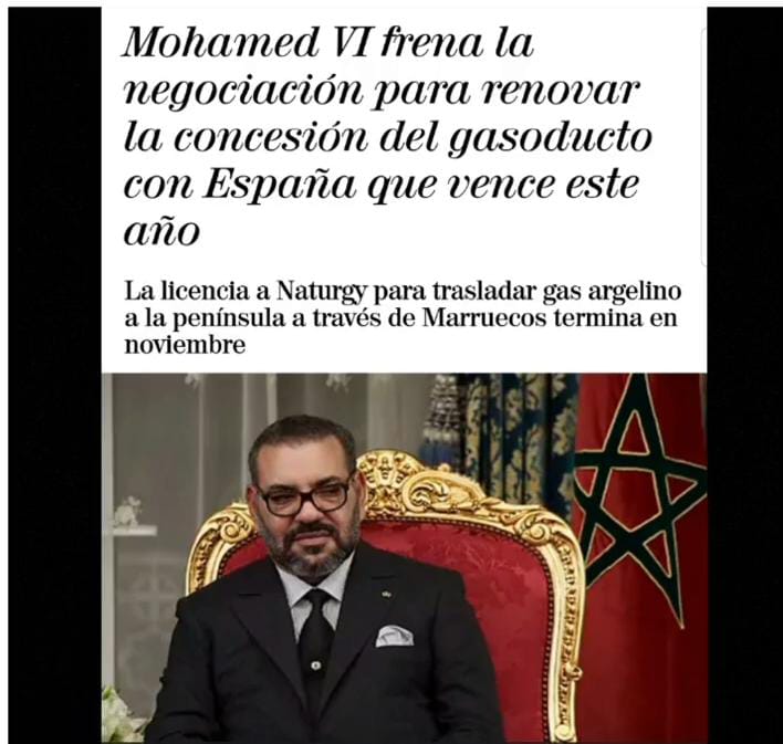 وقالت صحيفة ” إلموندو ” الإسبانية، أن المغرب أوقف مفاوضات تجديد خط الغاز الذي عبر أراضيه، القادم من الجزائر عبر المغرب وجبل طارق إلى إسبانيا.