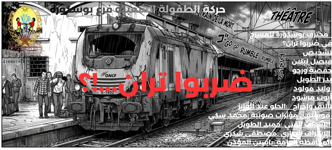 قدم محترف بوسكورة للمسرح، يوم الأحد 12 أبريل، عرضه الأول لمسرحية “ضربوا تران”، وذلك بفضاء دار الشباب الحي الحسني، في إطار الإقصائيات الإقليمية المؤهلة للمهرجان الجهوي لمسرح الشباب.